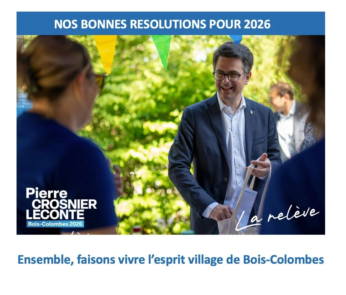 « Depuis cinq ans, j'agis dans un esprit d'équipe, avec méthode et constance, fidèle à un cap clair: pour que Bois-Colombes soit toujours Bois-Colombes. »